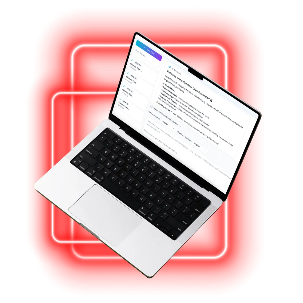 It all starts by having a simple conversation with our Ai that's been trained on high converting hooks and counter intuitive psychology to drive conversions and clicks. You tell it what you want and our backend Ai systems create up to 100 videos a day from our massive database of 100,000 faceless video clips.
